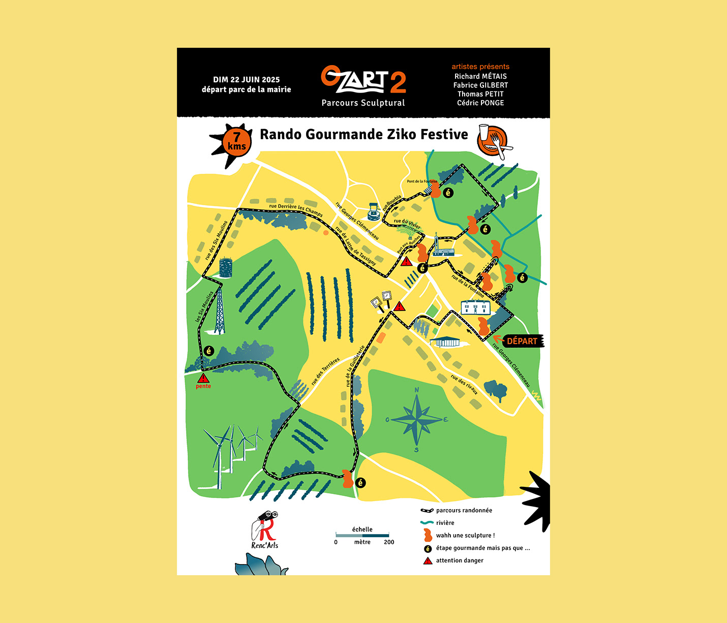 Pour l'inauguration de OZART #2, une randonnée gourmande de 7 kms environ, accompagnée d'animations musicales a eu lieu le 22 juin 2025. Le plan de la rando a été réalisée pour cette journée.