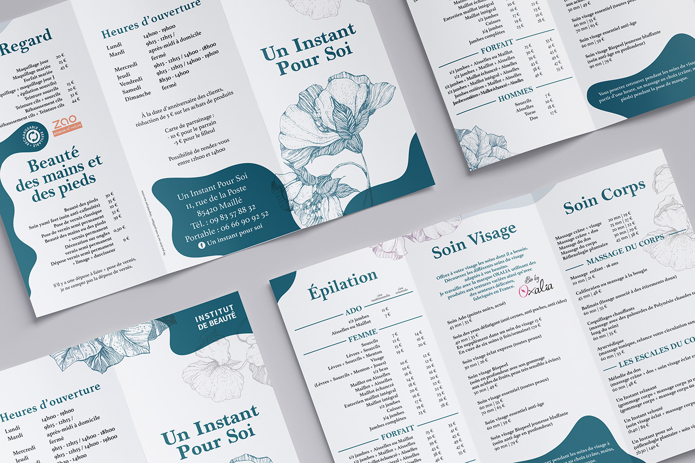Conception d'un dépliant pour l'institut de beauté, Un Instant pour Soi.